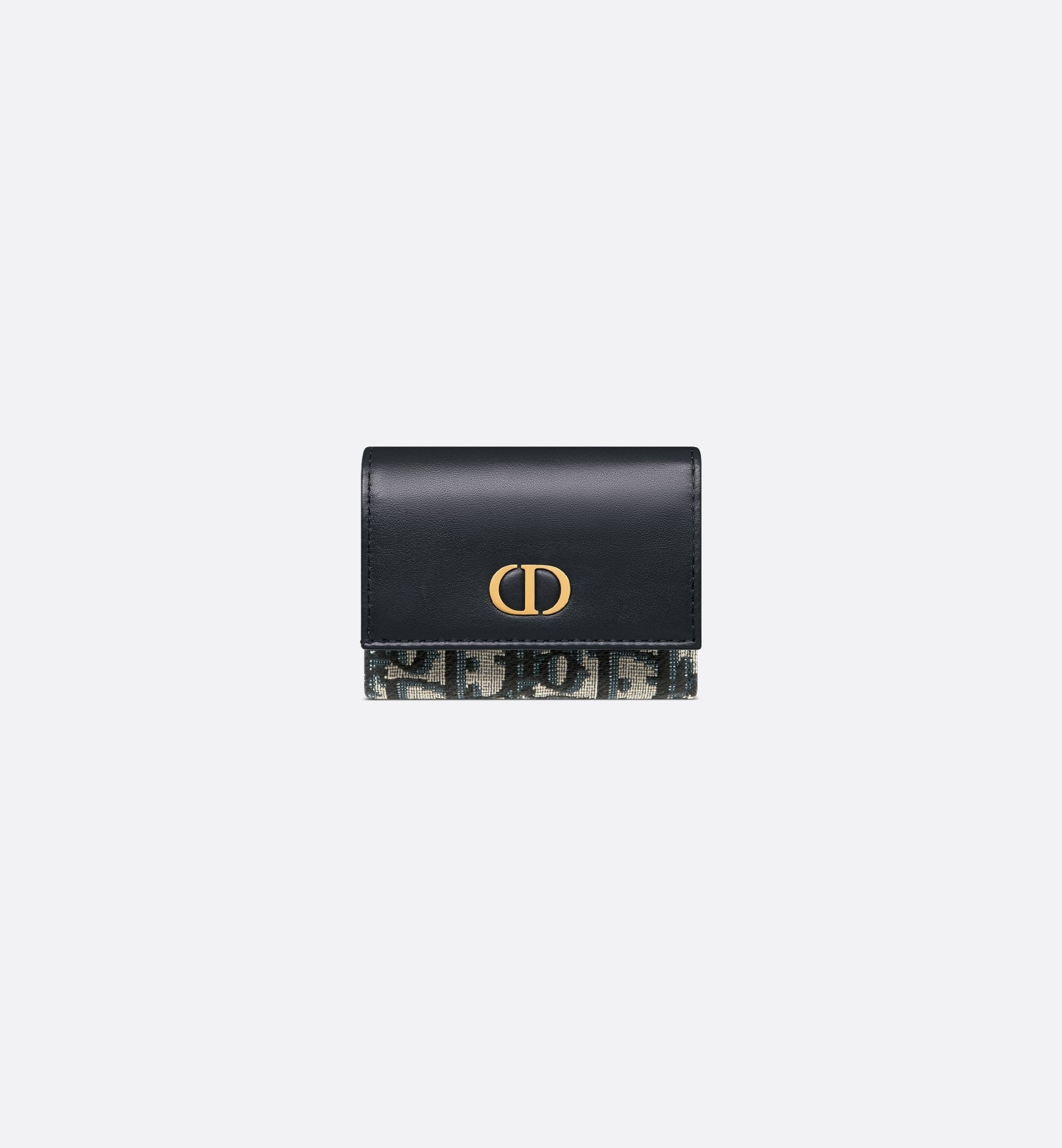 The Veronia wallet expands the 30 Montaigne line with a compact and practical trifold design. Crafted in blue Dr Oblique jacquard, it has a tonal smooth calfskin flap accented by an antique gold-finish metal CD signature on the front. Accommodating all the essentials, the refined accessory will fit anywhere and can be paired with other 30 Montaigne creations.